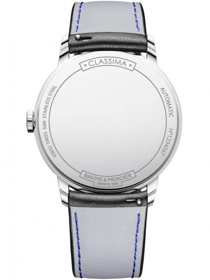 The Baume & Mercier 10332 Classima watch combines a 42mm round shaped stainless steel case and black leather strap with a traditional buckle. It has a white analogue dial with a date display which is protected beneath scratch resistant sapphire crystal glass. Power is generated by the Sellita SW200 Swiss made automatic movement with 26 rubies and a 38 hour power reserve. This model also has a water resistance of up to 50 metres.