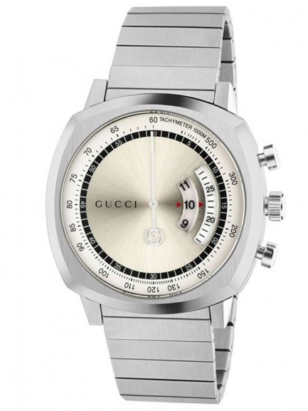 This eye-catching addition to the Gucci Grip collection features a very contemporary display including chronograph function. The sleek stainless steel case and bracelet adds an element of classic appeal.