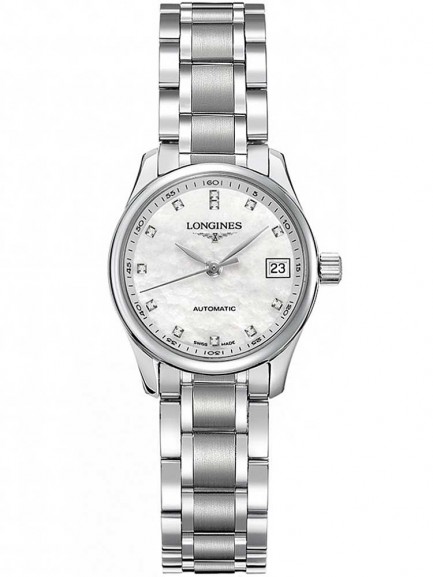 This magnificent watch has been expertly crafted using the finest stainless steel with a contrasting matte and polished link design. An impressive sapphire crystal glass dome ensures an incomparable level of protection for the dial, framed by the accompanying bezel. Set inside the minutes scale is the opulent mother of pearl dial embellished with a glorious array of 12 sparkling diamond stones set at each hour A transparent case back allows the complex mechanism of the watch to be seen.