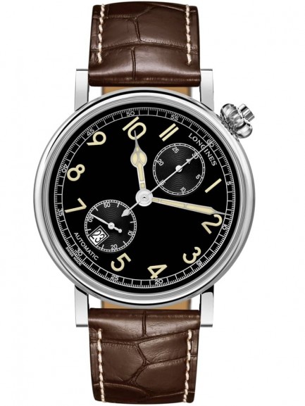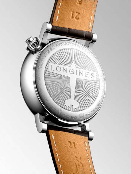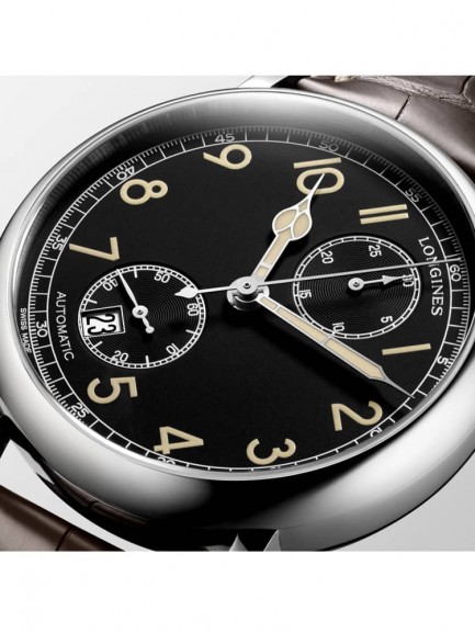 This Longines Heritage series watch pays homage to the brands history and has a 41mm stainless steel case and dark brown leather strap with buckle fastening. The black angled dial has Superluminova coated dial hands powered by the L788 Caliber automatic movement which also has a 54 hour power reserve.