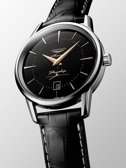 Introducing the Flagship Heritage Automatic strap watch, an excellent Swiss made timepiece with an attractive elegant design. Featuring a black dial with rose gold tone applied indexes and rose gold tone hands crafted with Swiss Super-LumiNova®. This model is finished with a black alligator strap which complements the dial perfectly.