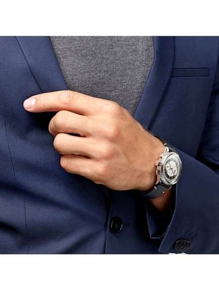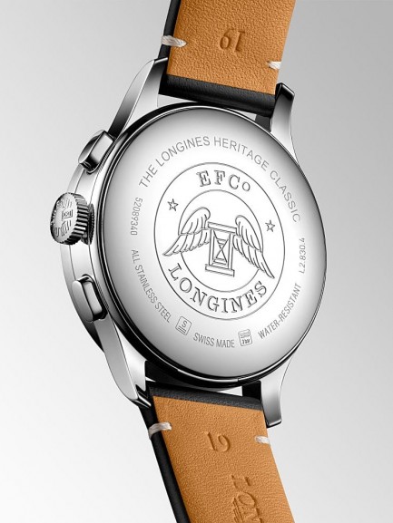Introducing the Heritage Classic Automatic Chronograph strap watch, an excellent Swiss made timepiece with attractive minimalist design. Featuring a silver and black chronograph dial with painted Arabic numerals, blue steel and polished silver tone hands which is finished with a black leather strap which complements the dial.
