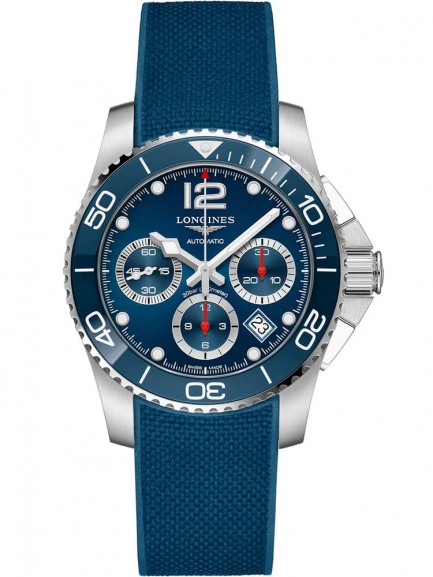 Longines Mens HydroConquest Automatic Chronograph Blue Rubber Strap Watch L3.783.3.96.7