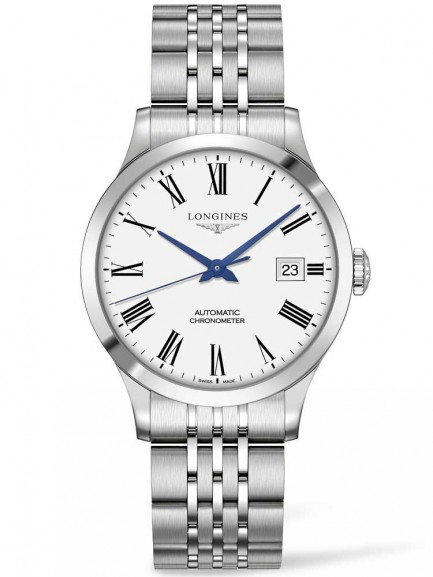 The Longines Record range is committed to providing timeless elegance and precision timekeeping while bridging the gap between tradition and innovation. Expert Swiss craftsmanship is showcased in scratch resistant sapphire crystal glass, polished and brushed stainless steel. The impressive chronometer certified automatic movement ensures accurate timekeeping while boasting 64 hours power reserve, 21 jewels and a date window on the suave traditional white dial.