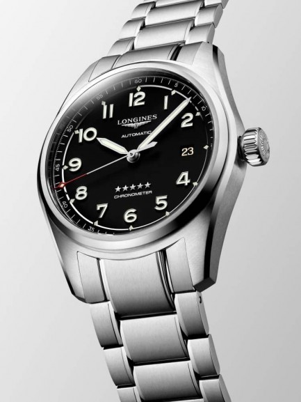 From the Longines Sport series is the Spirit collection. This edition has a 40mm stainless steel case and bracelet with a triple safety folding clasp and push piece opening mechanism. The black dial has Superluminova coated dial hands powered by the L888.4 Caliber automatic Chronometer movement, a COSC certified movement with a 64 hour power reserve and monocrystalline silicon balance-spring.