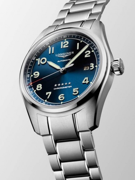 From the Longines Sport series is the Spirit collection. This edition has a 42mm stainless steel case and bracelet with a triple safety folding clasp and push piece opening mechanism. The blue dial has Superluminova coated dial hands powered by the L888.4 Caliber automatic Chronometer movement, a COSC certified movement with a 64 hour power reserve and monocrystalline silicon balance-spring.