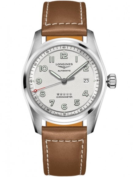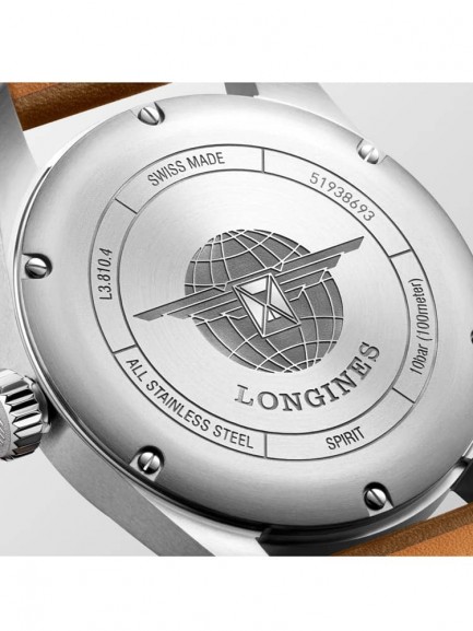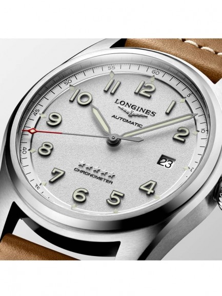 From the Longines Sport series is the Spirit collection. This edition has a 40mm stainless steel case and brown leather strap with a buckle clasp. The grey dial has Superluminova coated dial hands powered by the L888.4 Caliber automatic Chronometer movement, a COSC certified movement with a 64 hour power reserve and monocrystalline silicon balance-spring.