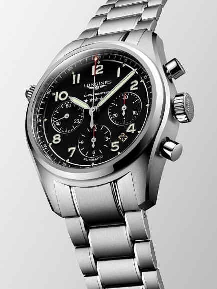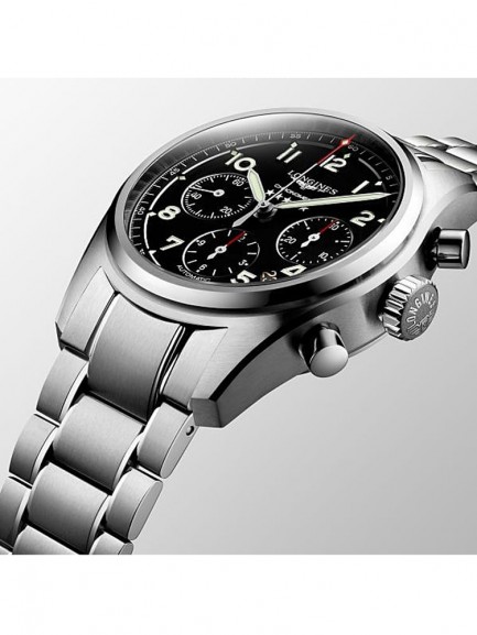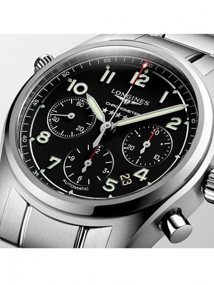 Introducing the Spirit Chronometer Automatic bracelet watch, an excellent Swiss made timepiece with an attractive classic design. Featuring a matte black chronograph dial with applied Arabic numerals, sandblasted silver tone hands crafted with Swiss Super-LumiNova®. This model is finished with a hard wearing stainless steel bracelet which complements it perfectly.
