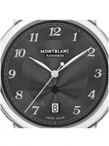 Montblanc introduces this stunning Swiss made slate grey coloured timepiece equipped with an alligator leather strap. The 39mm stainless steel case features domed sapphire crystal with anti-reflective coating and a star guilloche patterned backdrop with rhodium plated dial hands. Powering the dial hands and date display is an automatic movement hosting a power reserve of 42 hours with 21 jewels vibrating at a frequency of 28,800 times per hour.