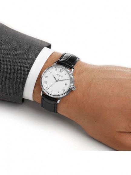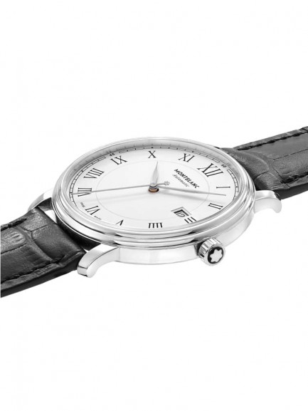 Designed to express classic watchmaking this mens timepiece is sure to add attraction to any outfit. The minimal white dial features silver tone hands along with black Roman numeral hour markers and a fully functioning date window at the side. Fastens comfortably using a black genuine leather strap.