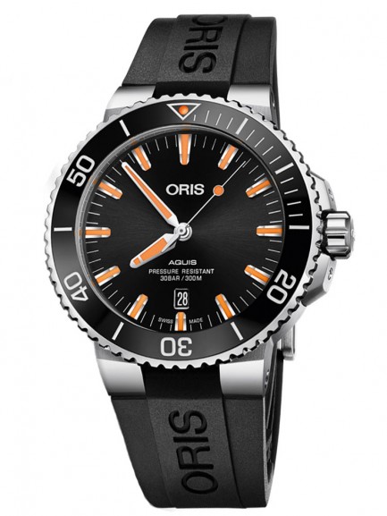 Introducing this sporty look mens strap watch from Oris and the Aquis collection, ideal for the active man. A sumptuous stainless steel case featuring a uni-directional rotating bezel, round black dial, vibrant orange baton hour markers, hands and a date window for extra functionality. Complete with 300m water resistance, a durable rubber strap and secure fold over clasp, it is perfect for diving.