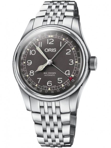 The Oris 01 754 7741 4064-07 8 20 22 Big Crown watch combines a 40mm round shaped stainless steel case and bracelet with a fold over clasp. It has a grey analogue dial with Superluminova coated hands and numerals and a date function using the red tipped hand, all of which is protected beneath domed scratch resistant sapphire crystal glass with an anti-reflective coating inside. Power is generated by the Oris 754 automatic movement with 26 jewels and a power reserve of up to 38 hours. This model also has a transparent mineral crystal case back, a screw-in security crown, and a water resistance of up to 50 metres.