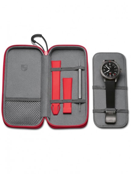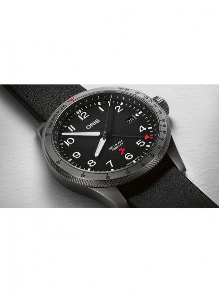 The Oris 01 798 7773 4284 HB-ZQL-SET Big Crown ProPilot Rega Fleet watch is limited to just 100 pieces worldwide and combines a 41.5mm round shaped stainless steel case and black leather strap with red lining and a fold over clasp. It has a black analogue dial with Superluminova coated hands and numerals and a date display, all of which is protected beneath domed scratch resistant sapphire crystal glass with an anti-reflective coating inside. Power is generated by the Oris 798 automatic movement with 25 jewels and a power reserve of up to 42 hours. This model comes with a certificate and has an additional red leather strap, a screw-in security crown, a water resistance of up to 100 metres, and an individually numbered case back engraved with an Airbus Rega rescue helicopter H145 and the registration HB-ZQL.