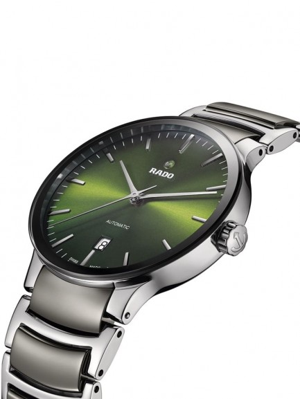 Part of the Centrix collection, this automatic timepiece features a plasma high-tech ceramic stainless steel bracelet. A green dial is set with stainless steel hour markers and hands with the addition of a date window at 6 o’clock. The piece is is finished with a sapphire crystal glass and a push deployment clasp fastening.