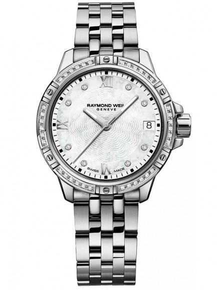A stunning addition to your watch collection this beautifully crafted Tango classic bracelet watch will add a touch of elegance to your look. The watch in dazzling stainless steel features a mother of pearl dial with 8 diamond set hours and sterling silver indexes. The dial also features a date index at 3 o’clock with a diamond set bezel to add a touch of glamour to any occasion.