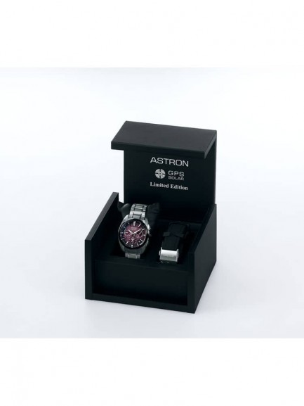 This Seiko SSH101J1 Astron watch is limited to just 800 pieces and combines a 42.8mm round shaped super hard coated titanium case and bracelet with a triple folding clasp and push button. It has a red analogue dial with Lumibrite coated hands and indexes as well as a day and date display, all of which is protected beneath super clear coated dual curved sapphire crystal glass. The watch also has: a perpetual calendar to 28 February 2100, dual time function, GPS signal for automatic time adjustment, power reserve display, and world time function. Power is generated by the Calibre 5X53 solar powered movement which can operate for approximately 6 months when fully charged. This model also has a water resistance of up to 200 metres.