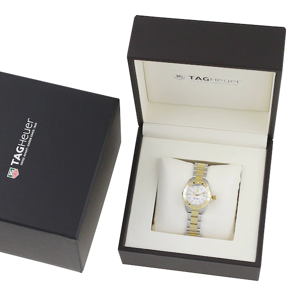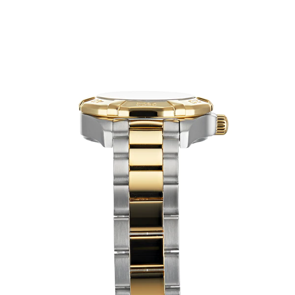 The ultimate in stylish sports design, this TAG Heuer Aquatimer Ladies’ Watch features a stunning white mother of pearl dial sitting confidently within a 27mm stainless steel case.