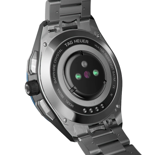 Guided by the taste and polishes of their classic timepieces, TAG have pushed the limits of design and technology to create a new generation of connected watches. This timepiece features the faceted horns, scratch-resistant sapphire crystal and ceramic blue bezel that has become signature to the brands watchmaking style.
